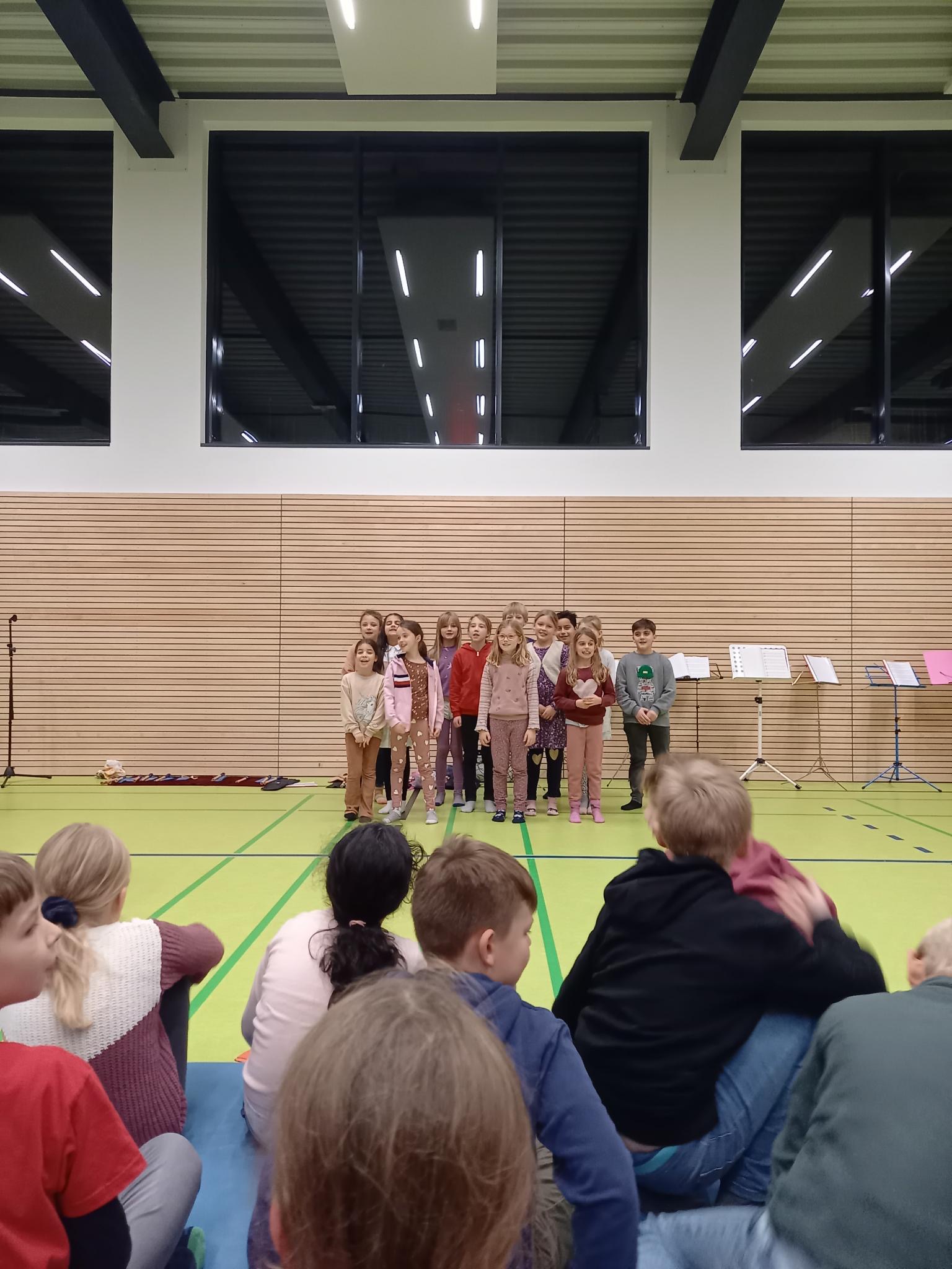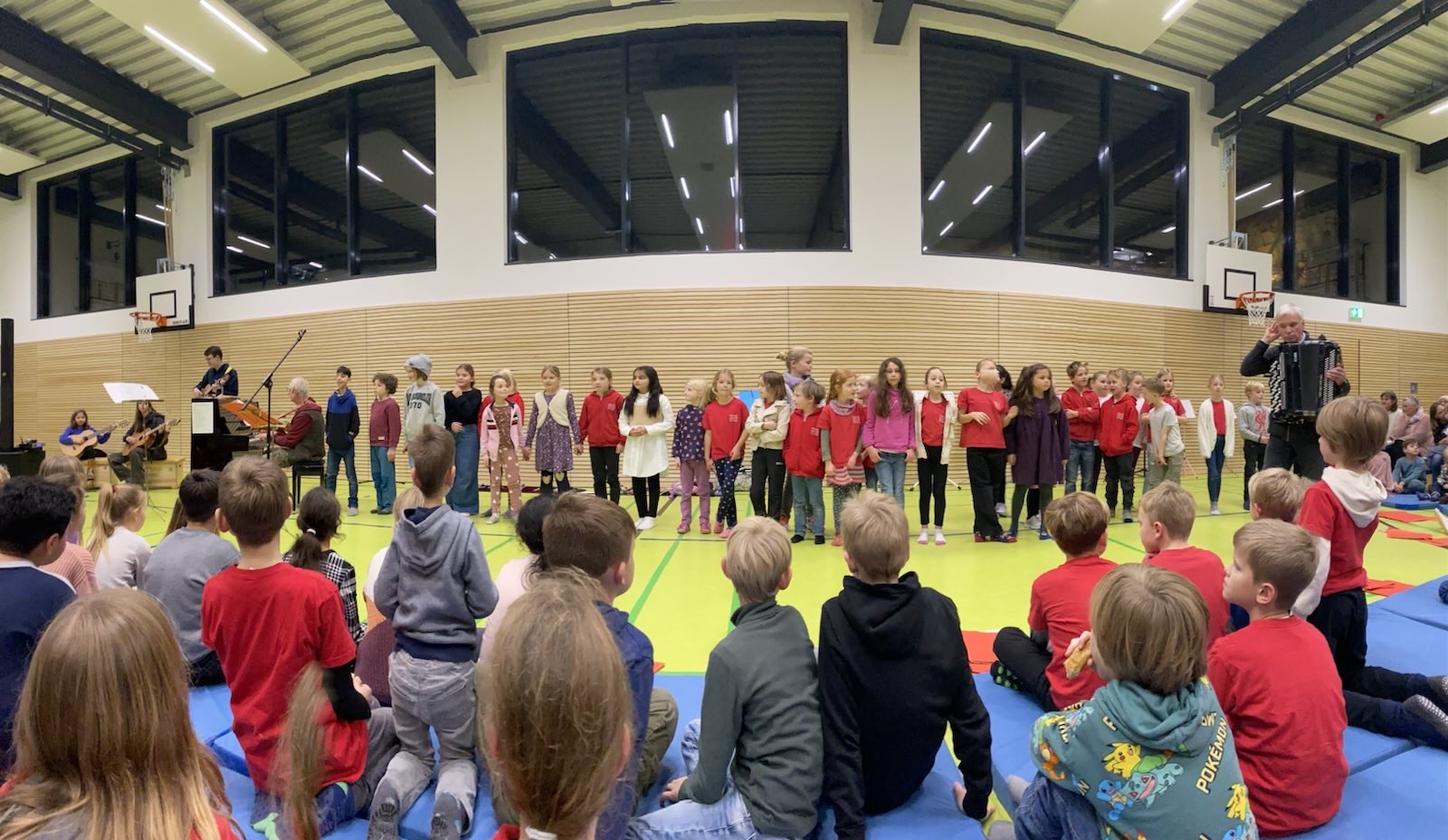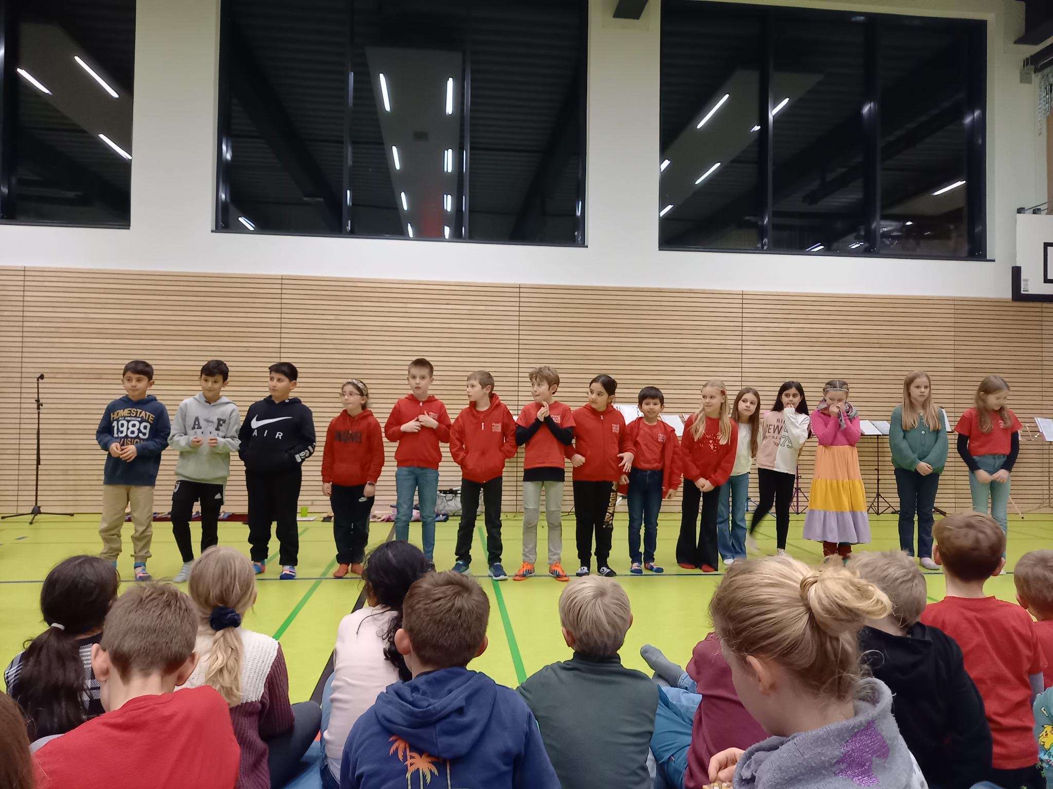 Am Donnerstagabend sind wir zu einem adventlichen Miteinander in unserer Turnhalle zusammengekommen! Jede Klasse hat ein Weihnachtslied geübt und präsentiert. Musikalisch unterstützt wurden wir von Gabi Wittwer mit ihren Flötenkindern und von Andreas Ottmer mit seinen GitarrenschülerInnen. Unsere selbstgebackenen Plätzchen, Laugenbrezel und Kinderpunsch wurden von eifrigen Eltern verkauft, der Erlös geht an unseren Förderverein und die Fachschaft Musik. Danke für die tolle Unterstützung!